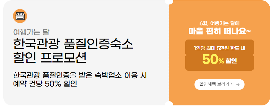 한국관광 품질인증 숙소를 할인된 가격으로 묵어보실 수 있는데요,