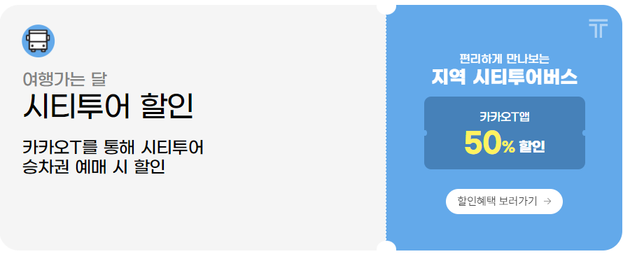 시티투어 할인도 카카오T로 손쉽게 받을 수 있습니다.