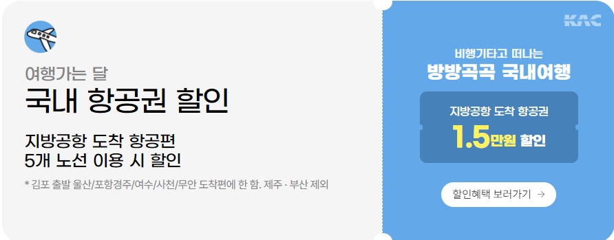 국내 항공권도 할인 받고 알차게 여행 떠나보세요.
