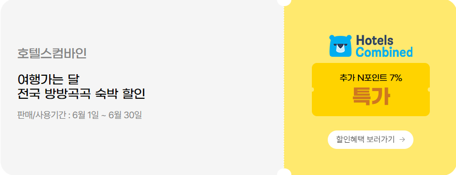 호텔스컴바인에서도 전국 방방곡곡 숙박 할인 행사를 진행합니다.